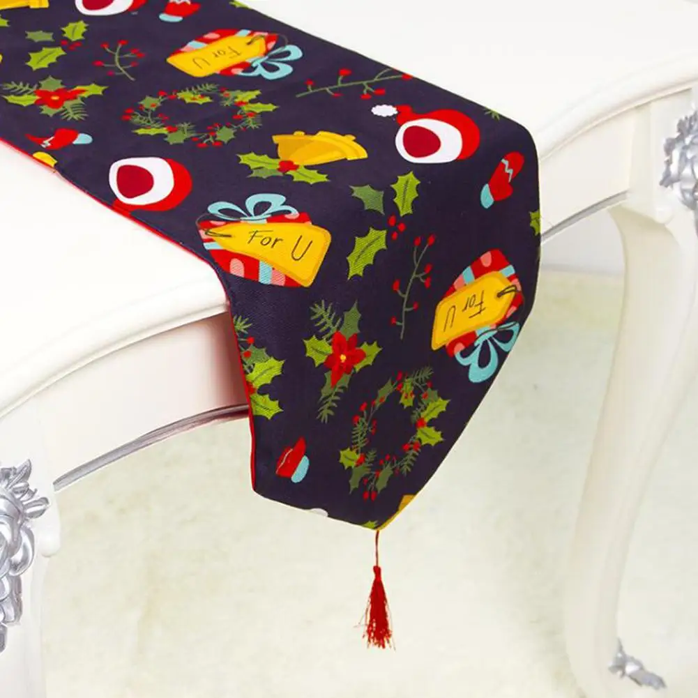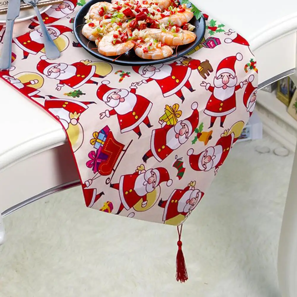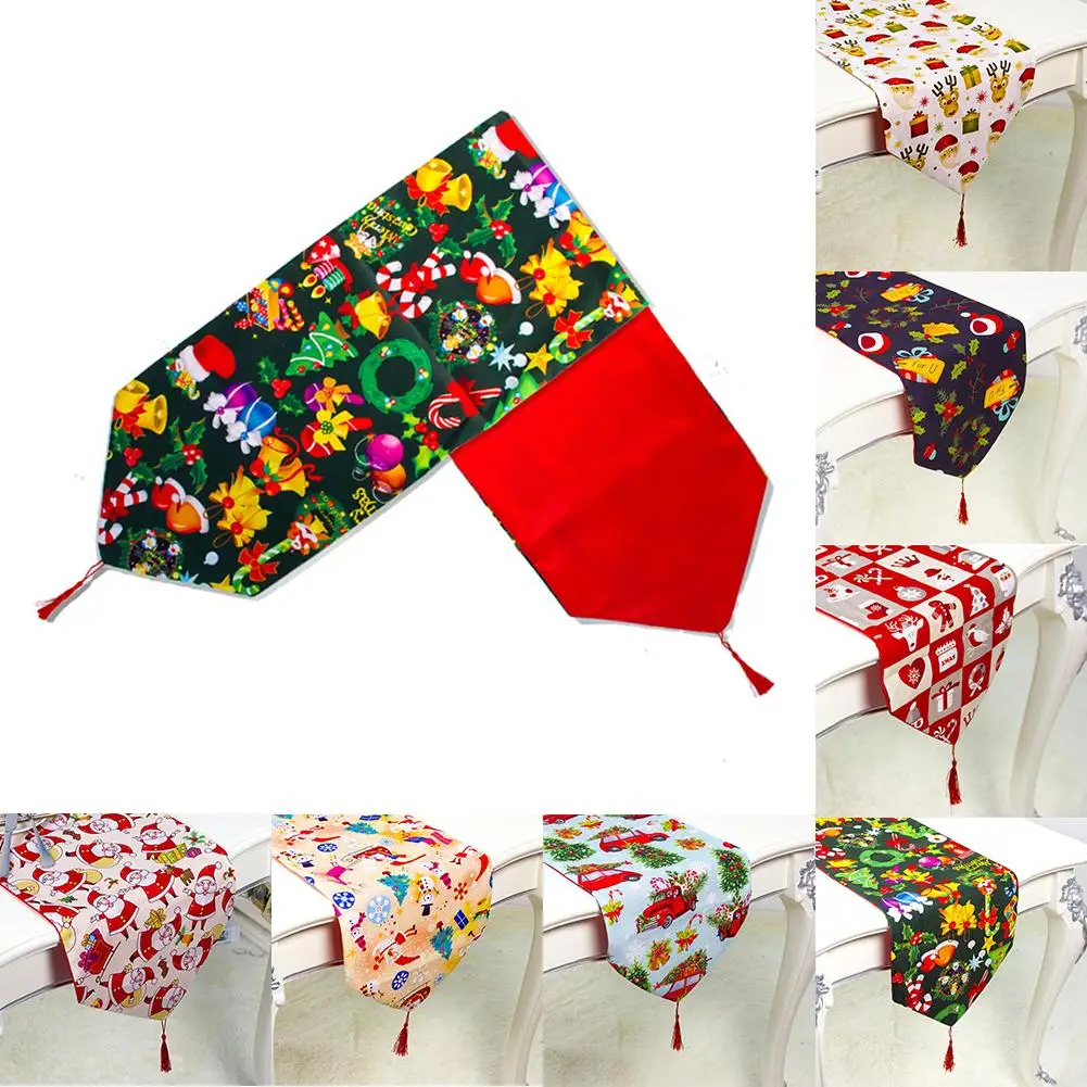 | 180*35cm Christmas Decoration For Home Printed Table Flag Table Runner Printed Tassel Tablecloth Placemat Festival Decoration |