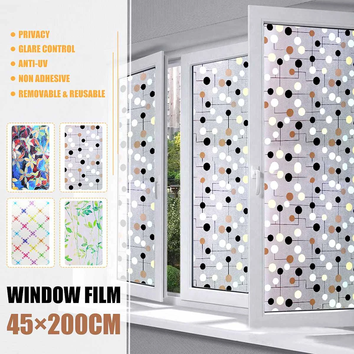 | 45x200cm PVC Frosted Window Film Waterproof No Glue Scrubs Frosted Glass Sticker Home Bedroom Bathroom Office Decoration Privacy |