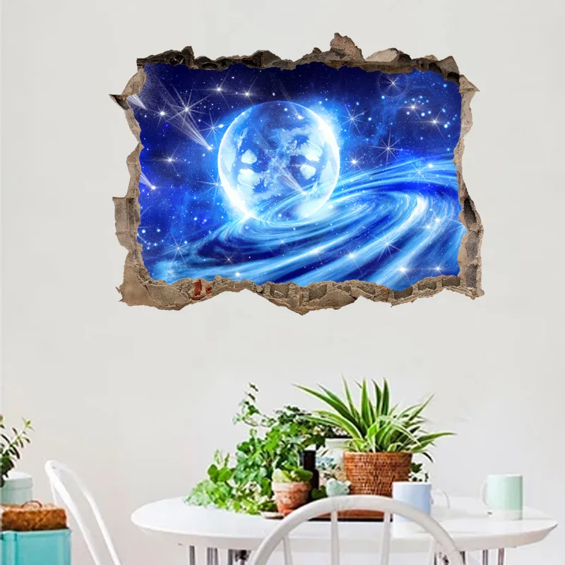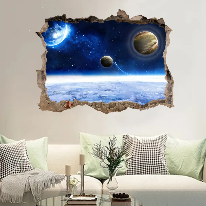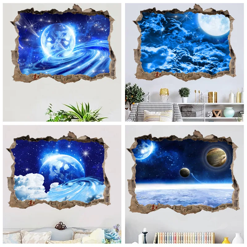 | 3D Window Sticker Space Star Blue Sky Background Wall Home Decor Living Room Bedroom False Window Decoration Sticker Mural |