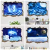 3D Window Sticker Space Star Blue Sky Background Wall Home Decor Living Room Bedroom False Window Decoration Sticker Mural