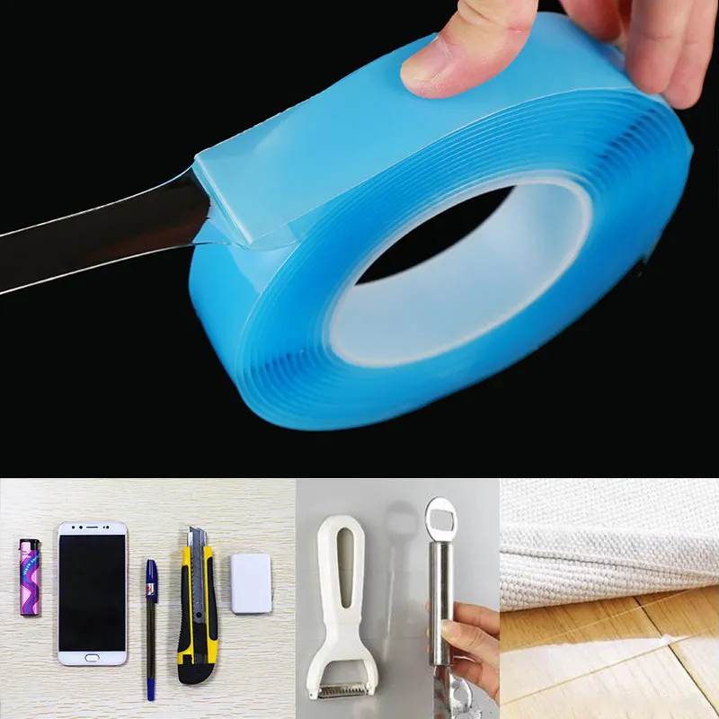 Traceless Washable Removable Tapes Toothbrush Holder Bathroom Accessories Multifunctional Double-Sided Adhesive Tape 1PCQuantity:1PCType:Taps1. Washable, can be reused more than 600 times.2. The gel super strong and washable and reusable Gel formula there are an infinite amount of potential uses.3. It is easily removable and will not damage your walls or surfaces.4. Double-sided adhesive and washable and reusable.5. Keep items in place without slipping.6. Main Material: Nano PU GelSpecificationColors:TransparentSize: Thickness:1MM,2MM;Width:3CM;Length:1M,2M,3M,5MMaterial: Nano PU GelNote:· The actual manual measurement size may have some errors. The actual size is subject to the actual product.· Due to different lighting and shooting conditions, the color of the picture may differ slightly from the actual product. Please refer to the actual product.