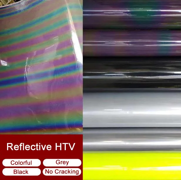 Width: 50cm Holographic Heat Transfer Vinyl HTV Colorful Reflective Film Rainbow Effect Sheet DIY Length:30cm/50cm/100cmBuy Now On Aliexpress