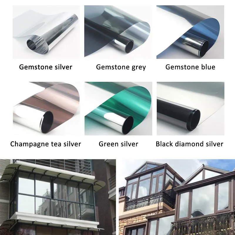 Gemstone Grey Waterproof Window Film One Way Mirror Silver Insulation Stickers UV Rejection Privacy Window Tint Films