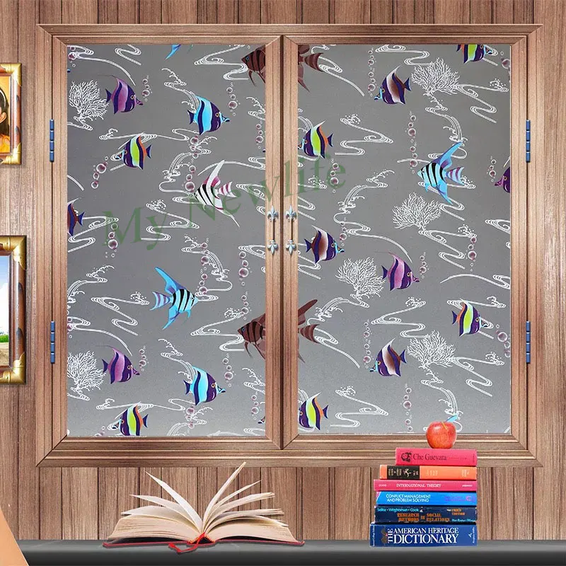 Stained fish window foil film Frosted glass sticker toning PVC Self-adhesive Decorative vinyl film for furniture window sticker