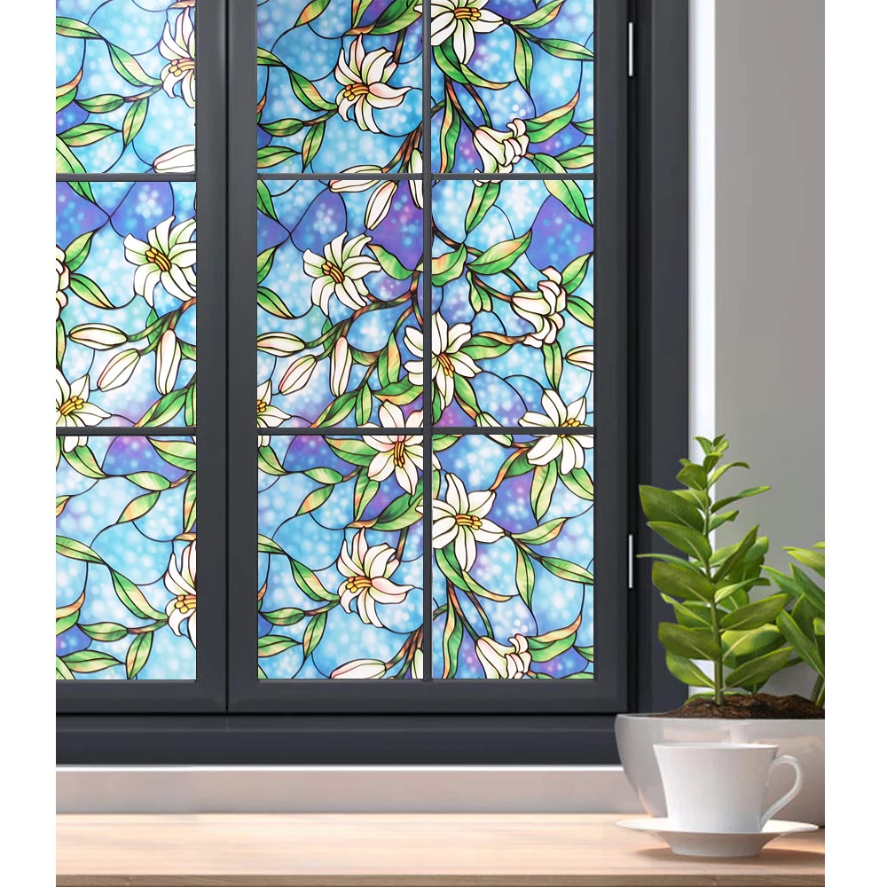 45/60/90 x 200 cm Privacy solar Window Film.Static Non-adhesive Stained magnolia Pattern Home Glass Decorative Sun Blocking FilmBuy Now On Aliexpress