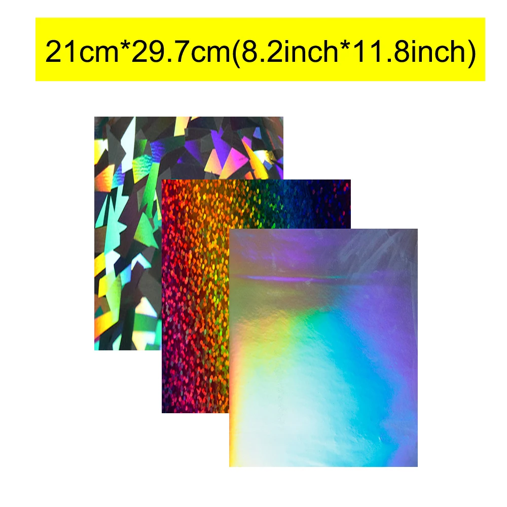 SUNICE Rainbow Effect Holographic Heat Transfer Vinyl Iron on Clothing Style Hat 3 sheet 8.2 x 11.8 (21cm x 29.7cm) Pack